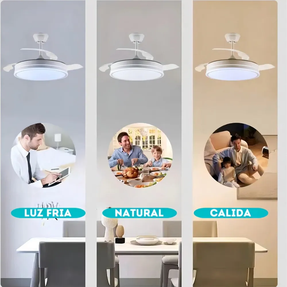 Ventilador Aspas Retractiles Moderno De Techo Luz Led 48w